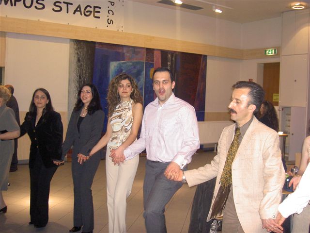Attendance included the Iraqi ambassador who is in charge of Iraqi interests in Syria and the Iraqi vocalist, Sa’adoun Jaber, who sang two of his most famous songs during the April First party. To the applause of the attendees, the Syrian Assyrian singer Emanuel Eskandar revived the old Assyrian nationalist songs with the Assyrian folklore band dancing in their traditional costumes. The efforts exerted by Emanuel Khoshaba, Assyrian Democratic Movement’s representative in Damascus, to make celebrations possible in the Syrian capital were remarkable. “We should not pass a year without celebrating Kha b'Nissan although many martyrs fell for the sake of freedom in Iraq,” Khoshaba told Zinda Magazine. Terana Hormiz al-Teyyari, 23, who fled Baghdad days before the U.S.-led war on Iraq in March 2003, said she was celebrating Kha Bnissan for the first ever time.