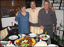 FAMILY MEAL: Allan Enwiyah embraced his parents in Baghdad in an undated photo. Allan began work as an interpreter after closing his music store because of death threats.